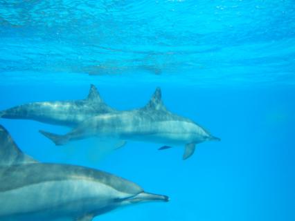 Sicherheit wird groß geschrieben und so ist es nicht nur für die Kinder Pflicht, Schwimmwesten anzulegen. Jeder Gang in das Wasser wird mit Tauchlehrern und einem Begleitboot durchgeführt. Bereits am ersten Riff konnten wir eine kleine Gruppe von Tümmlern sehen. Die Unterwasserwelt an den besichtigten Riffen fasziniert, Korallen und eine Vielfalt an farbenprächtigen Fischen sind hier zu beobachten. Wir hatten auf unserer Tour mehrfach das Glück, beim Schnorcheln den Delfinen recht nah zu kommen. Hierfür kann es jedoch keine Garantie geben.